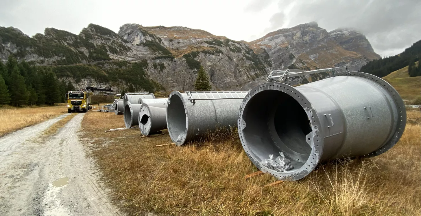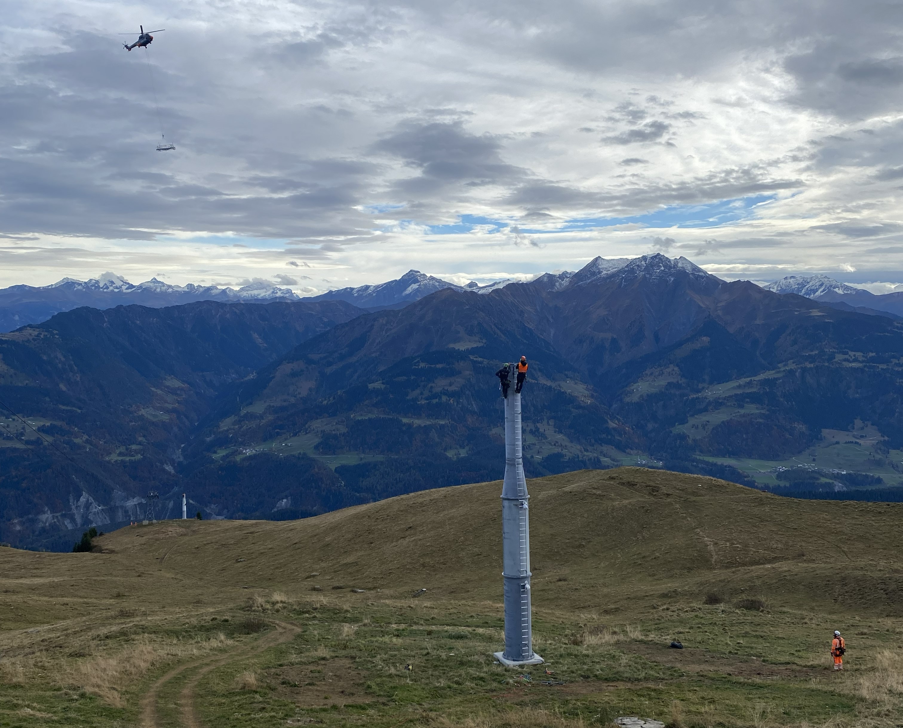 Aktuell werden grosse, vormontierte Komponenten spektakulär per Helikopter an ihren Platz geflogen.