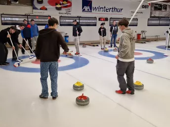Die Lernenden von Bartholet, feierten die diesjährigen "Winterspiele" mit einem gemütlichen Curlingnachmittag in Wildhaus.