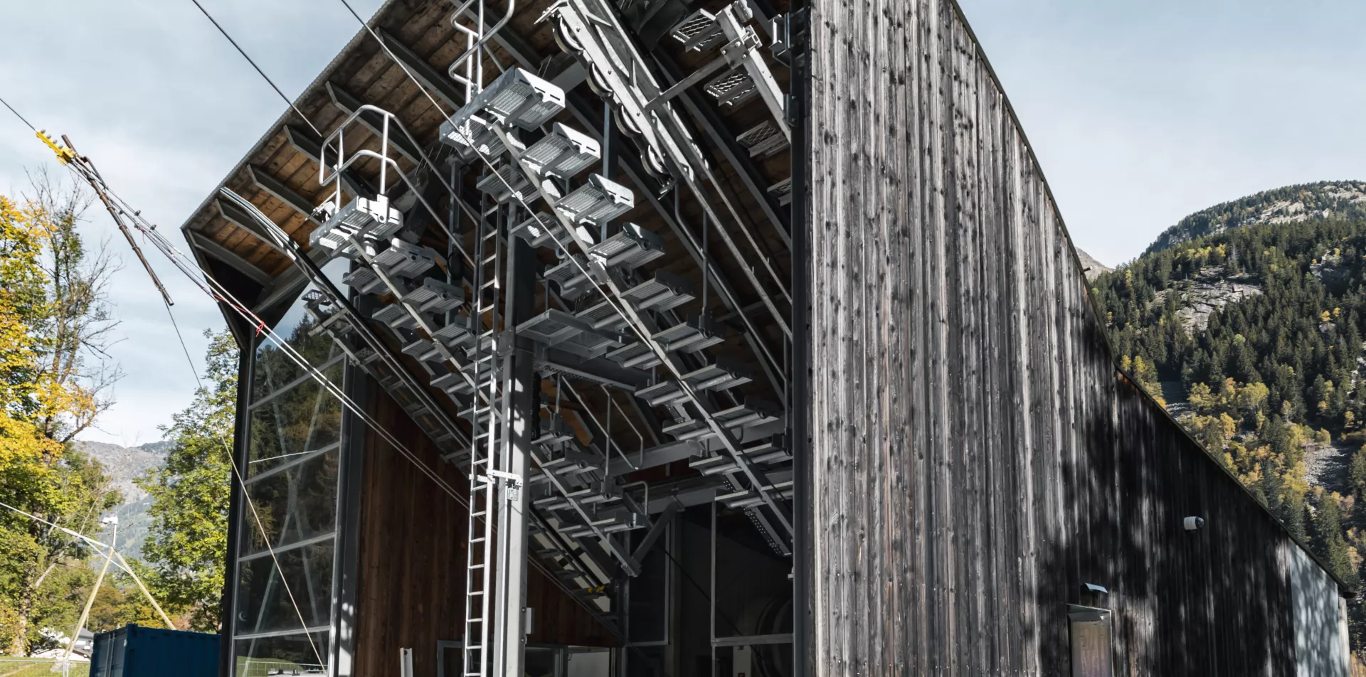 The two existing lattice towers will be replaced by a single spectacular round-tube tower, 42 m in hight, dividing the line into two sections, each around 650 m long.