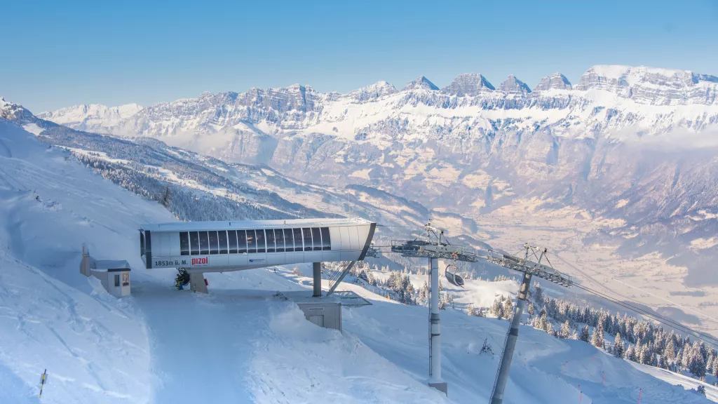 Chair lift with 6-seater chair in Pizol, Switzerland