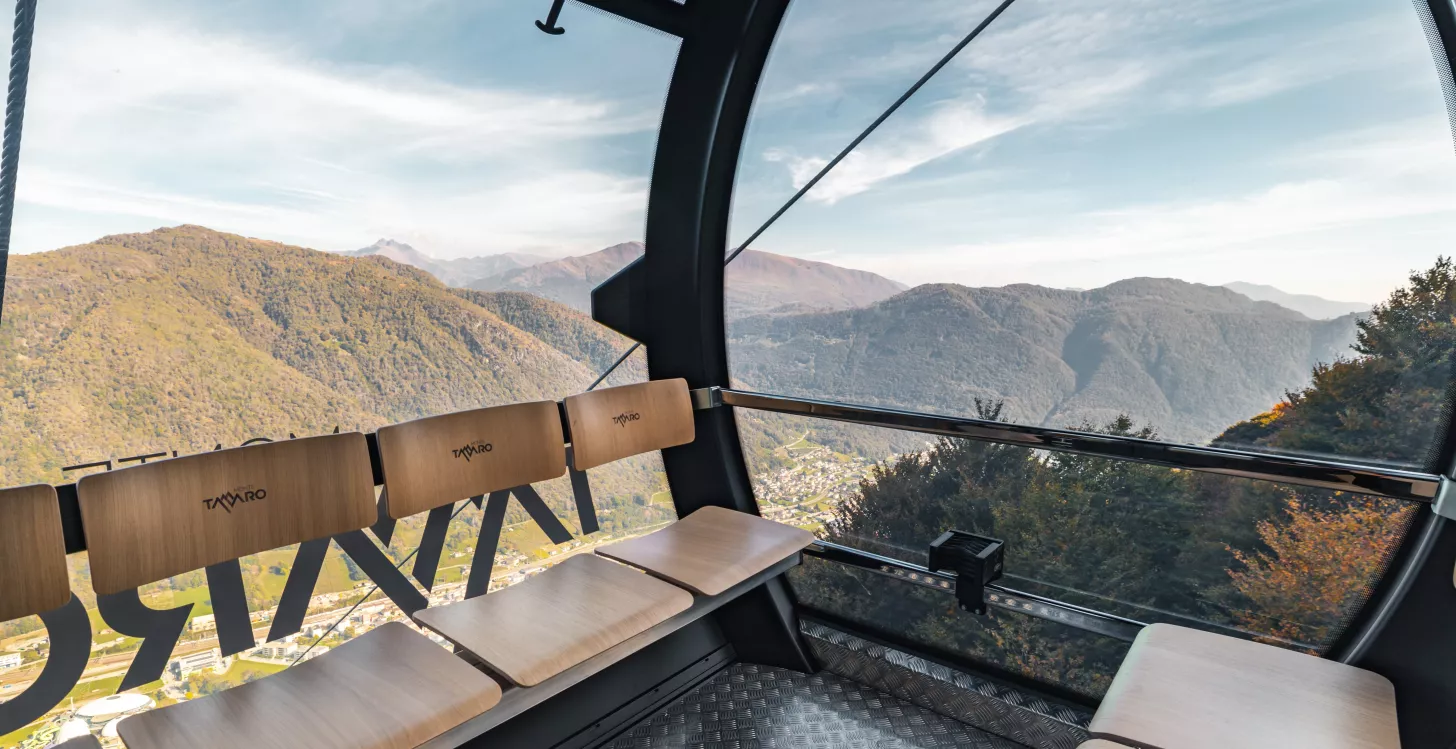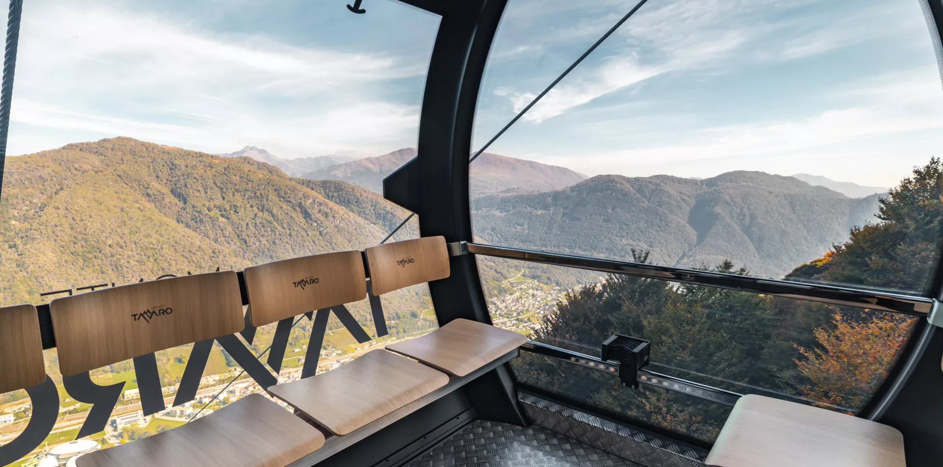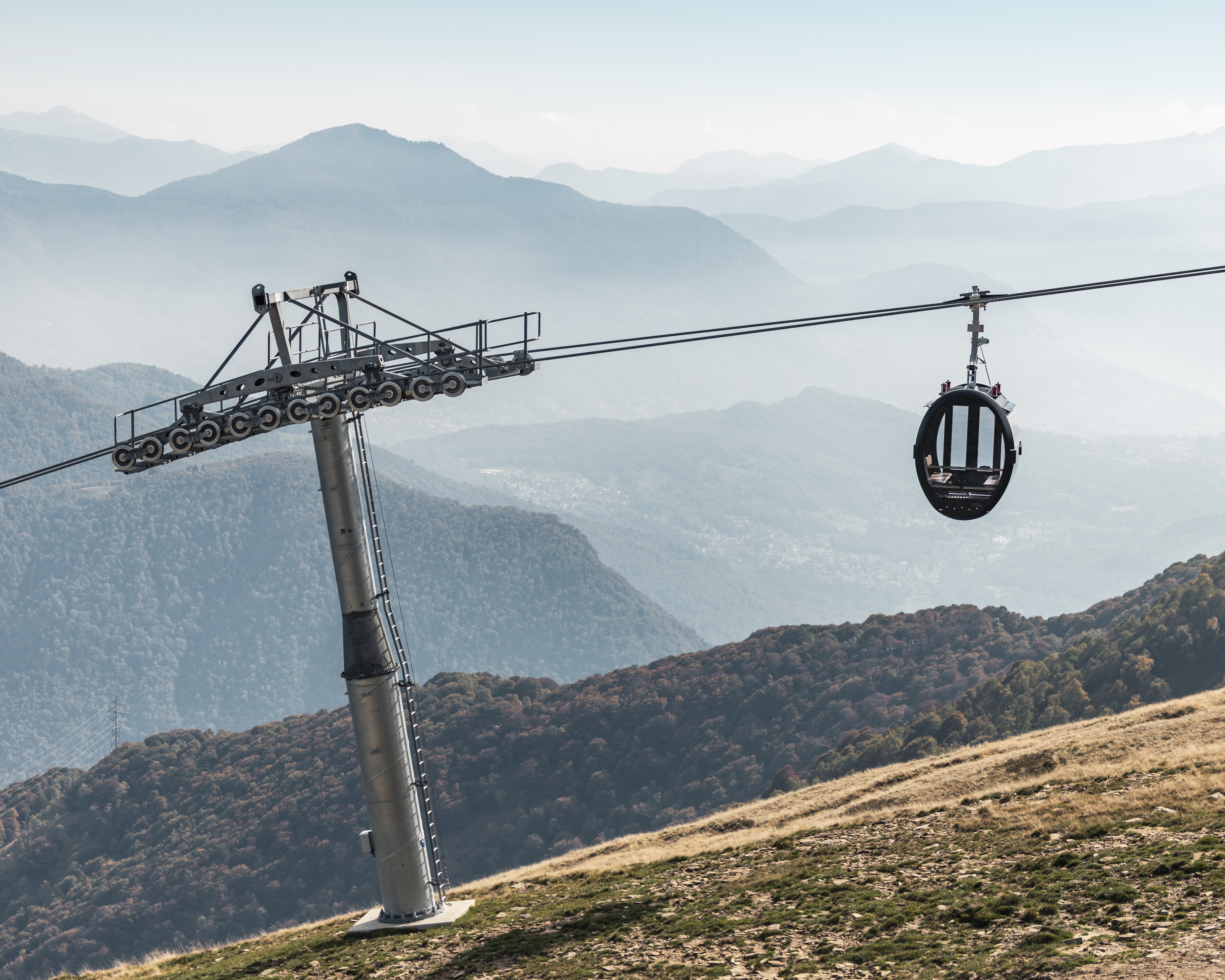 We relied on our proven strengths to build the new ropeway: Design, precision craftsmanship and technological innovation. The 8-seater panoramic gondolas designed by Studio F. A. Porsche were used on Monte Tamaro, guaranteeing maximum comfort and incomparable views of the Ticino mountains. Barrier-free entrances and optimized ventilation also enhance the travel experience