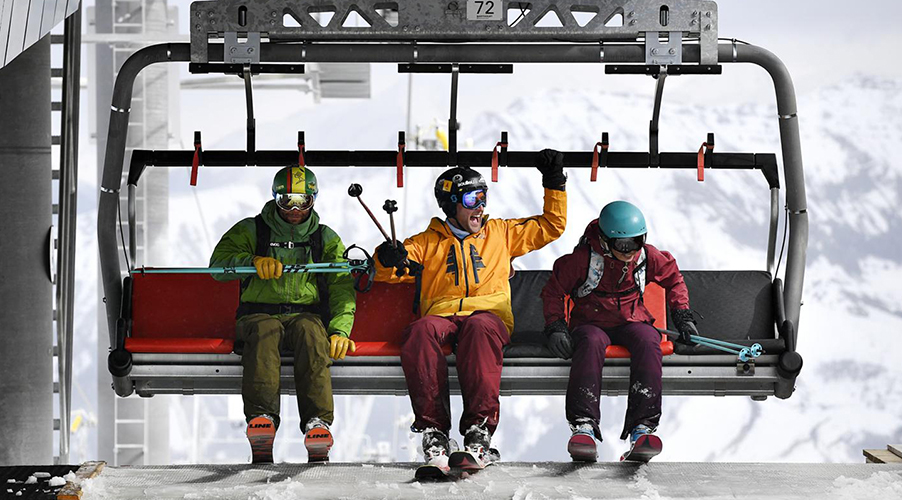 - Repose-pieds ajouré offrant un espace généreux pour les jambes et une large surface d’appui pour les skis
