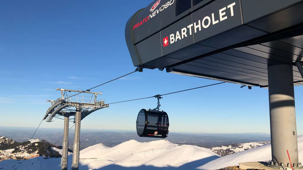 La nouvelle télécabine 10 places Bartholet est exploitée avec succès depuis décembre 2019 dans la station piémontaise italienne de Prato Nevoso. L'élégante couleur noire des cabines, combinée aux portes rouge vif, soulignent le caractère résolument dynamique de l’installation. Au-delà de leur design exclusif, les cabines “Panorama” se distinguent également par un confort de transport unique. Cette nouvelle installation dans les Alpes Ligures est la première télécabine 10 places bartholet en Italie.