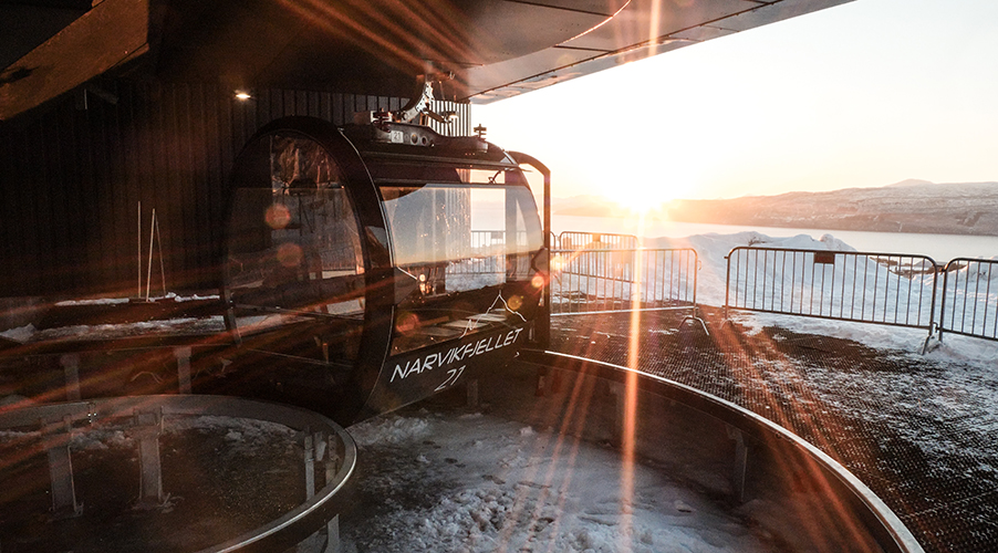 In der norwegischen Hafenstadt Narvik ist im 2019 eine neue 10er Gondelbahn von Bartholet in Betrieb genommen worden. Die Anlage im hohen Norden ist einerseits die erste 10er Gondelbahn aus dem Hause Bartholet und andererseits die erste Bartholet Seilbahn in Skandinavien überhaupt. Sie bringt die Besucher zu einer Aussichtsplattform auf dem Narvikfjellet mit spektakulären Blick auf die Stadt und die umliegende Landschaft.