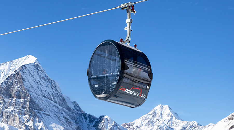 San Domenico ist ein Ortsteil von Varzo und liegt 1420 m hoch im Norden vom Piemont. Es gehört zu einem Tal in den Lepontinischen Alpen, das von Bergen, Wäldern und kleinen Seen umgeben ist, nahe der Schweizer Grenze. Es ist einer der letzten Orte in den Alpen, an dem man die Berge noch ganz unberührt erleben kann, sowohl in der Wandersaison als auch in der Skisaison. Hier ist jetzt unsere 8-Personen-Panoramagondelbahn für eine komfortable und attraktive Fahrt verfügbar.
