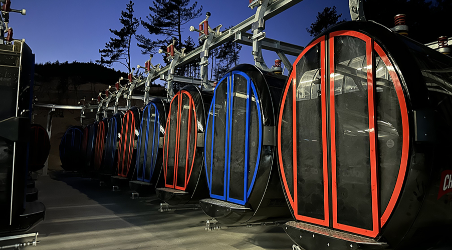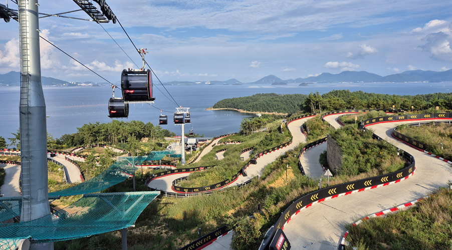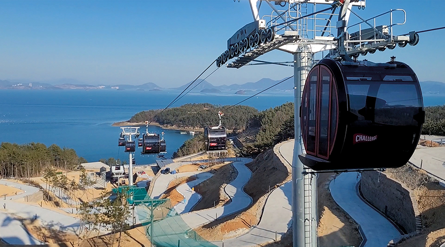 Die neue Rodelbahnanlage «Challenge Park» in der südkoreanischen Stadt Yeosu beeindruckt auf 61 Meter Höhe mit einer atemberaubenden Aussicht auf das ostchinesische Meer. Die Gondeln, entworfen im «Design by Porsche Design Studio», sind Teil der Rodelbahn und bieten bis zu 2300 Personen pro Stunde Platz.