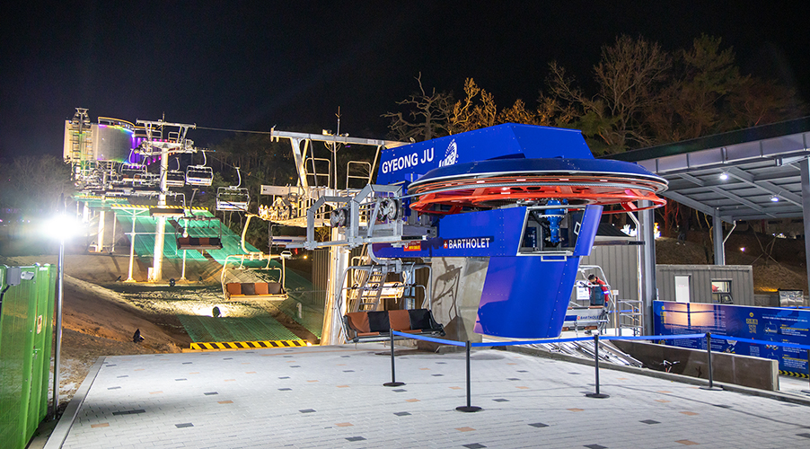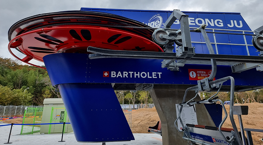 Mitten im Tourismus- und Wellnessresort Bomun, ungefähr drei Stunden südlich von Seoul entfernt wurde aktuell neben der Rodelbahn eine neue fixe 4er Sesselbahn von Bartholet eröffnet. Bis zu 1200 Personen kann die Sesselbahn pro Stunde befördern. Die kurze Strecke von der Talstation bis zur Bergstation beträgt 345 Meter und mittels 61 Sesseln werden Hobbysportler sicher und komfortabel auf den Hügel transportiert. Dank einer Vorrichtung können die Luges, eine Art steuerbarer Rodel, automatisch direkt mit dem Sessel mittransportiert werden.