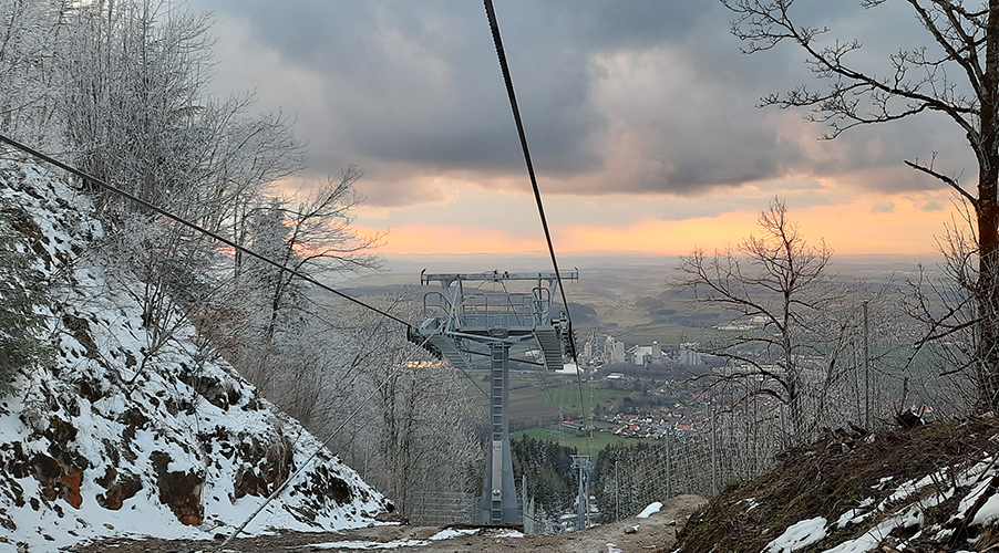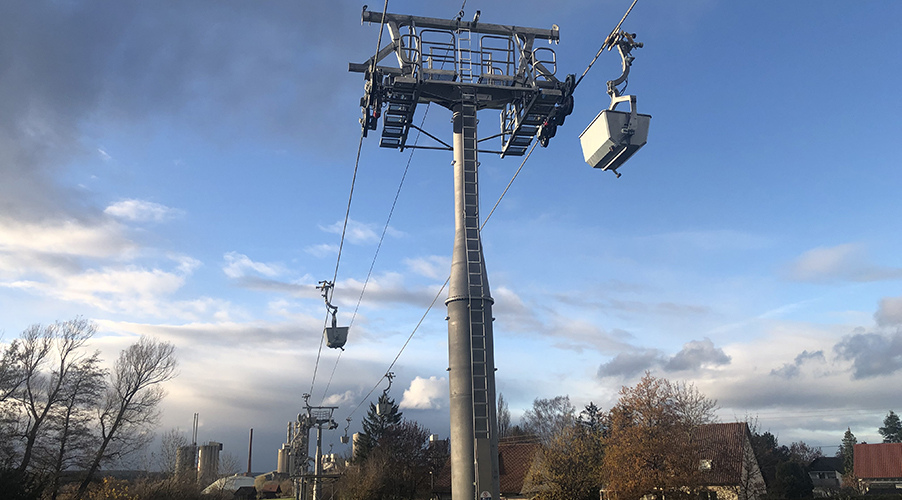 In Dotternhausen, zwischen Balingen und Rottweil in Baden-Württemberg, befindet sich ein Zementwerk der Firma Holcim. Schon seit 1942 wird dort mittels einer Materialseilbahn Kalkgestein «Weisser Jura» vom Plettenberg zum Zementwerk gefördert. Im September 2020 konnte die Firma Bartholet ein Seilbahnprojekt umsetzen, welches über die 2.3 km lange Strecke mit 138 Loren eine Förderleistung von 450 Tonnen pro Stunde erreicht. Trotz gleichbleibender wöchentlicher Abbauleistung auf dem Plettenberg wird der Wochenendbetrieb der Materialseilbahn eingestellt. Dazu wurde die Förderkapazität der Materialseilbahn von 300 t/h auf 450 t/h erhöht, was zu einer Reduzierung der täglichen Nettobetriebszeit von ca. 13.5 auf 9 Stunden führte.