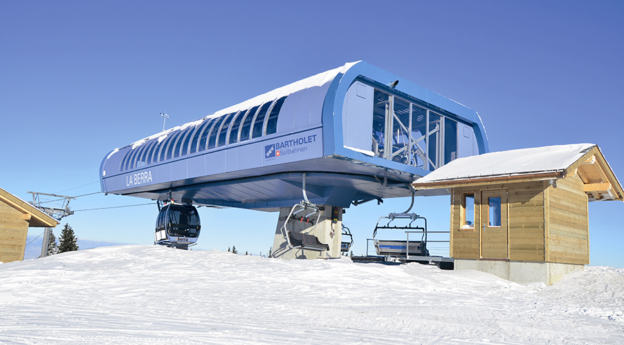 Im schweizerischen Kanton Freiburg hat Bartholet im Jahr 2013 seine erste kuppelbare Kombibahn realisiert. Die Bahn in La Berra ist eine kombinierte Anlage aus