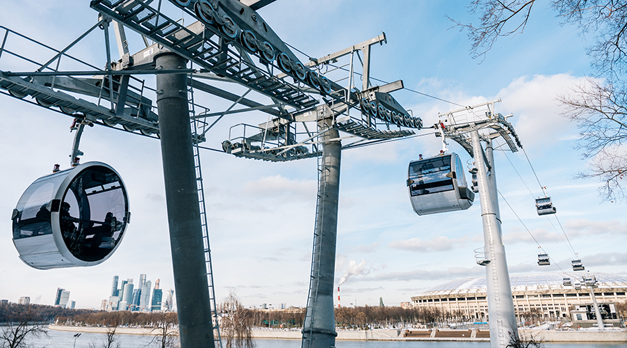 Im 2018 wurde mitten in der Hauptstadt Russlands eine einzigartige Seilbahnanlage von Bartholet eröffnet. Die Passagiere kommen dadurch bequem und schnell vom olympischen Stadion «Luschniki» im Zentrum Moskaus zum höchsten Punkt der Stadt «Vorobyovy Gory». Dabei wird der Fluss Moskva überquert und in der 2. Sektion der Anlage sind zusätzlich zu den 8er-Gondeln 4er-Sessel im Umlauf. Die Luftlinie zwischen den beiden Orten beträgt lediglich 700 m, mit dem Auto muss man jedoch einen Umweg von 6.5 km und mindestens 15 Minuten auf sich nehmen. Die Seilbahn wird einerseits als urbanes Transportsystem genutzt, andererseits aber auch als Touristenattraktion und Wintersport-Personenbeförderung.