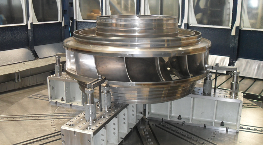 Mit der 220 t schweren Karussell-Drehmaschine Bimatec Soraluce VTC-8000 können Drehteile