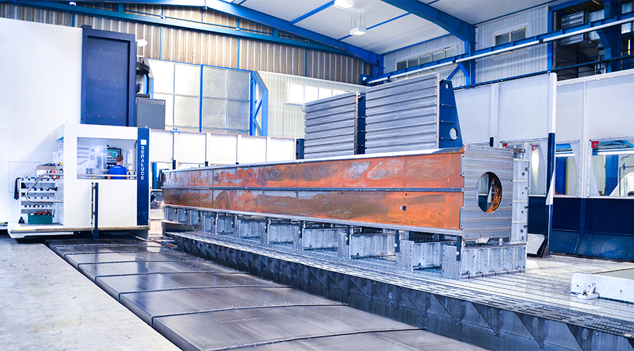 Wir fräsen und bohren kubische Werkstücke mit bis zu 14 m Länge und 3.6 m Höhe. In Aluminiumblöcke sind Langlöcher bis zu 1.5 m tief möglich.